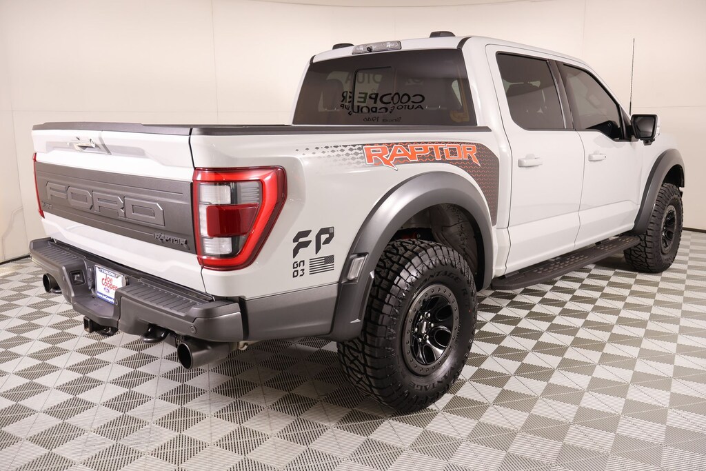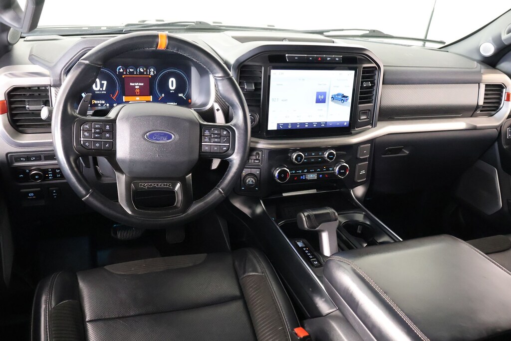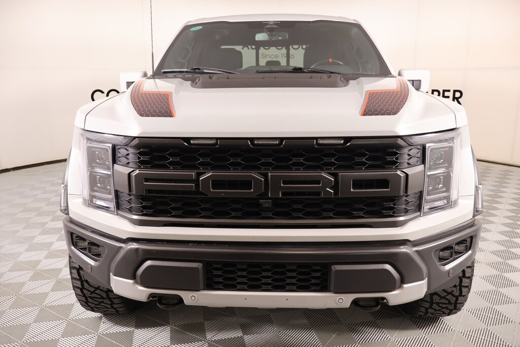 THIS VEHICLE COMES EQUIPPED WITH THE FOLLOWING OPTIONS AND FEATURES: Equipment Group 801A Standard, GVWR: 7,300 lbs Payload Package, Moonroof & Tailgate (Twin Panel Moonroof), Raptor Carbon Fiber Package, Raptor Exterior Graphics Package, Cooper Certified Certified, 4WD, 17" Cast Aluminum Wheels, 17" Forged Aluminum Bead-Lock Capable Wheels, 18 Speakers, 4-Wheel Disc Brakes, ABS brakes, Adaptive suspension, Adjustable pedals, Air Conditioning, Alloy wheels, AM/FM radio: SiriusXM with 360L, Auto High-beam Headlights, Auto Start-Stop Removal (DISC), Auto tilt-away steering wheel, Auto-dimming door mirrors, Auto-dimming Rear-View mirror, Automatic temperature control, Brake assist, Bumpers: body-color, Compass, Delay-off headlights, Driver door bin, Driver vanity mirror, Dual front impact airbags, Dual front side impact airbags, Electronic Locking w/4.10 Axle Ratio, Electronic Stability Control, Emergency communication system, Exterior Parking Camera Rear, Front anti-roll bar, Front Bucket Seats, Front Center Armrest, Front dual zone A/C, Front fog lights, Front reading lights, Front wheel independent suspension, Fully automatic headlights, Garage door transmitter, Heated door mirrors, Heated front seats, Heated rear seats, Heated steering wheel, Illuminated entry, Inclination/Intrusion Sensor Removal, Lane Departure Warning System, Leather Trim Seats w/Heated 2nd Row, Low tire pressure warning, Memory seat, Navigation system: Connected Navigation, Occupant sensing airbag, Outside temperature display, Overhead airbag, Overhead console, Panic alarm, Passenger door bin, Passenger vanity mirror, Pedal memory, Power door mirrors, Power driver seat, Power passenger seat, Power steering, Power windows, Radio data system, Radio: B&O Unleashed Sound System by Bang & Olufsen, Rain sensing wipers, Rear reading lights, Rear step bumper, Rear window defroster, Remote keyless entry, Security system, Speed control, Speed-sensing steering, Split folding rear seat, Steering Wheel Heat Removal (DISC), Steering wheel memory, Steering wheel mounted audio controls, SYNC 4 w/Enhanced Voice Recognition, Tachometer, Telescoping steering wheel, Tilt steering wheel, Traction control, Trip computer, Turn signal indicator mirrors, Variably intermittent wipers, and Ventilated front seats.