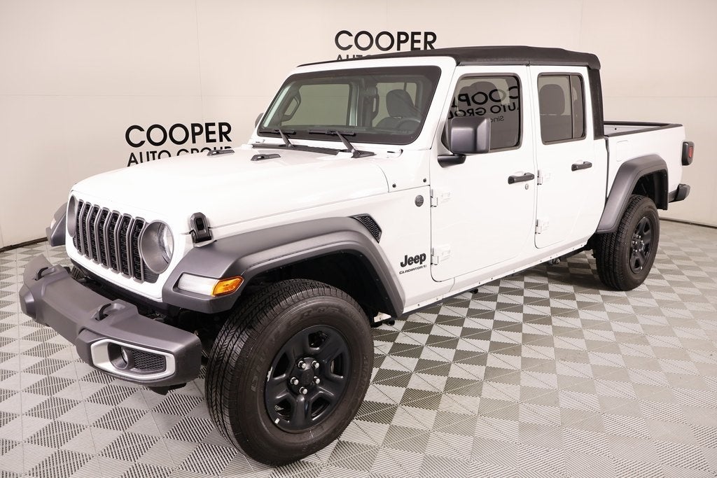 2024 Jeep Gladiator Quick Order Package 24B Sport, Cooper Certified Certified, 12.3 Touchscreen Display, 3.73 Rear Axle Ratio, 4-Wheel Disc Brakes, 4G LTE Wi-Fi Hot Spot, 8 Speakers, ABS brakes, Air Conditioning, Alexa Built-In, AM/FM radio: SiriusXM with 360L, Apple CarPlay, Apple CarPlay/Android Auto, Brake assist, Cloth Low-Back Bucket Seats, Compass, Connectivity - US/Canada, Delay-off headlights, Disassociated Touchscreen Display, Driver door bin, Driver vanity mirror, Dual front impact airbags, Dual front side impact airbags, Electronic Stability Control, Emergency communication system: Jeep Connect, Front anti-roll bar, Front Bucket Seats, Front Center Armrest w/Storage, Front fog lights, Front reading lights, Google Android Auto, Integrated Center Stack Radio, Integrated roll-over protection, Low tire pressure warning, Occupant sensing airbag, Outside temperature display, Overhead airbag, ParkView Rear Back-Up Camera, Passenger door bin, Passenger vanity mirror, Power steering, Radio data system, Radio: Uconnect 5 w/12.3 Display, Rear anti-roll bar, Rear reading lights, SiriusXM Radio Service, SiriusXM w/360L, Speed control, Split folding rear seat, Steering wheel mounted audio controls, Tachometer, Telescoping steering wheel, Tilt steering wheel, Traction control, Trip computer, USB Host Flip, Variably intermittent wipers, Voltmeter, Wheels: 17 x 7.5 Black Steel Styled, 110 MPH Vehicle Max Speed Calibration, MOPAR All-Weather Slush Mats, and Normal Duty Suspension.