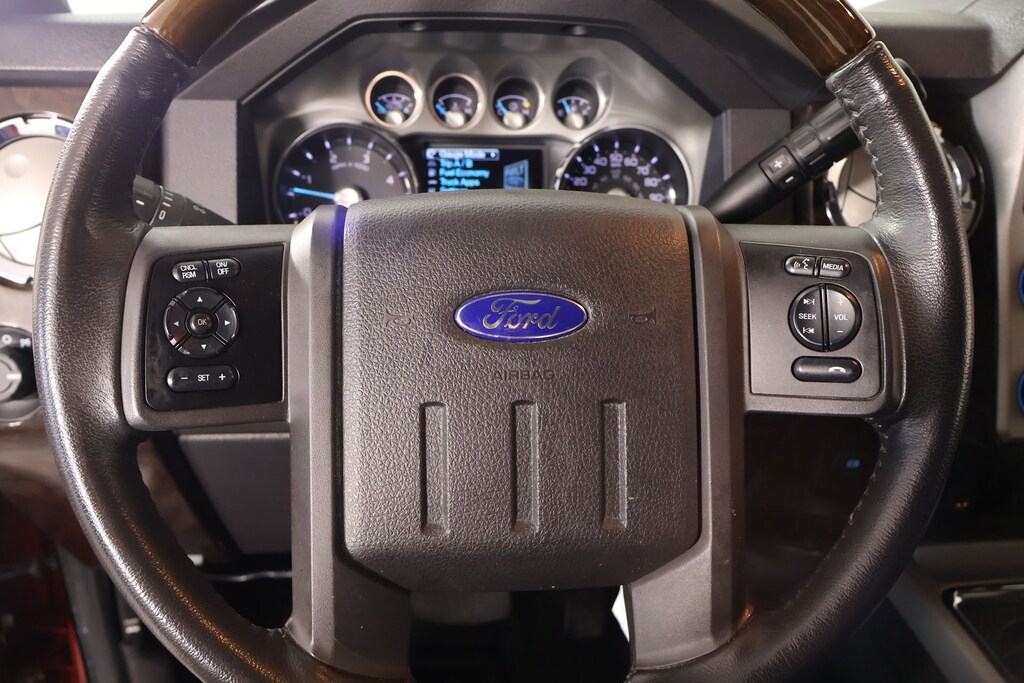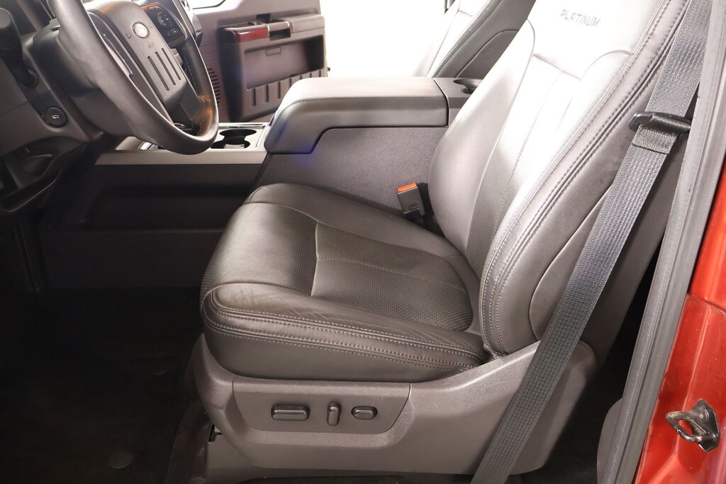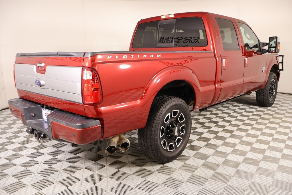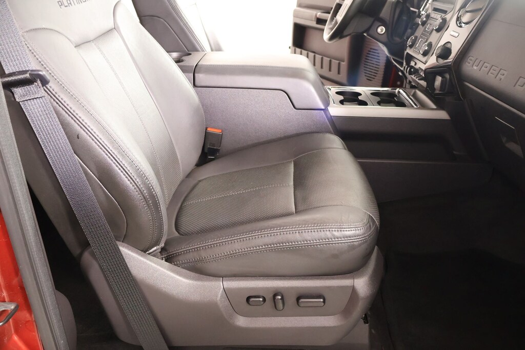 THIS VEHICLE COMES EQUIPPED WITH THE FOLLOWING OPTIONS AND FEATURES: FX4 Off-Road Package (Colored Front & Rear Rancho Branded Shocks and Hill Descent Control), GVWR: 10,000 lb Payload Package, Order Code 608A, Platinum Package (6" Angular Chrome Step Bars, Body-Color Front & Rear Bumpers, Bright Chrome Door & Tailgate Handles, Chrome Exhaust Tip, Chrome Skull Caps on PowerScope Mirrors, Console, Door Trim, Memory Power Adjustable Pedals, PowerScope Trailer-Tow Mirrors, Premium Leather-Wrapped/Wood Steering Wheel, Remote Start System(s), Tailgate Step & Handle, Unique Platinum Leather 40/Console/40 Seats, Unique Satin Chrome Grille, Universal Garage Door Opener, Voice Activated Navigation, and Wheels: 20" Cast Aluminum w/Painted Pockets), F-250SD Platinum, 4D Crew Cab, Power Stroke 6.7L V8 DI 32V OHV Turbodiesel, TorqShift 6-Speed Automatic with Overdrive, 4WD, Ruby Red Metallic, Black Leather, Air Conditioning, Heated door mirrors, Heated Rear Seats, Premium audio system: Sony, Premium Leather Seating Surfaces 40/Console/40, Remote keyless entry, Steering wheel mounted audio controls, Upfitter Switches (4), 10 Speakers, 3.73 Axle Ratio, 4-Wheel Disc Brakes, ABS brakes, Adjustable pedals, Alloy wheels, AM/FM radio: SiriusXM, Auto-dimming Rear-View mirror, Automatic temperature control, Bodyside Molding, Brake assist, Bumpers: chrome, CD player, Compass, Delay-off headlights, Driver door bin, Driver vanity mirror, Dual front impact airbags, Dual front side impact airbags, Electronic Locking w/3.55 Axle Ratio, Electronic Stability Control, Engine Block Heater, Exterior Parking Camera Rear, Extra Heavy-Duty 200-Amp Alternator, Front anti-roll bar, Front Bucket Seats, Front Center Armrest, Front dual zone A/C, Front fog lights, Front reading lights, Fully automatic headlights, Illuminated entry, Leather steering wheel, Low tire pressure warning, Outside temperature display, Overhead airbag, Overhead console, Panic alarm, Passenger door bin, Passenger vanity mirror, Power door mirrors, Power driver seat, Power Moonroof, Power passenger seat, Power steering, Power windows, Radio data system, Radio: Premium Sony Audio w/Singl