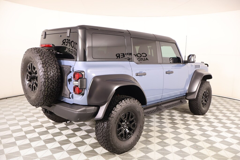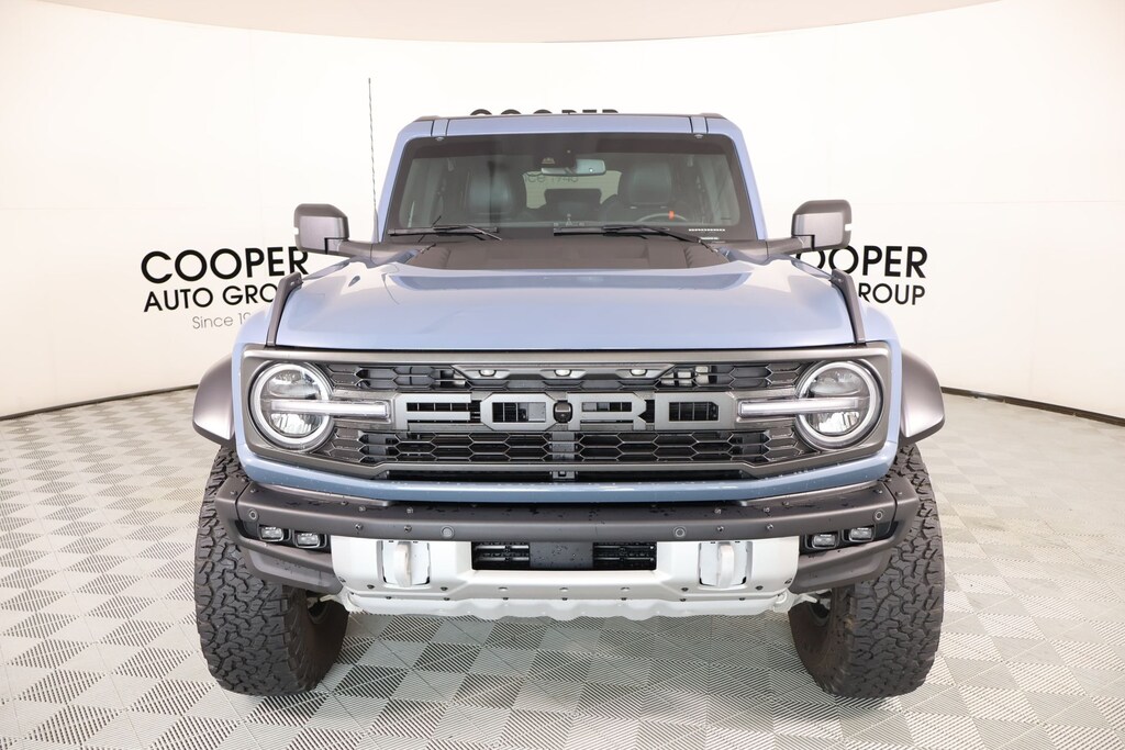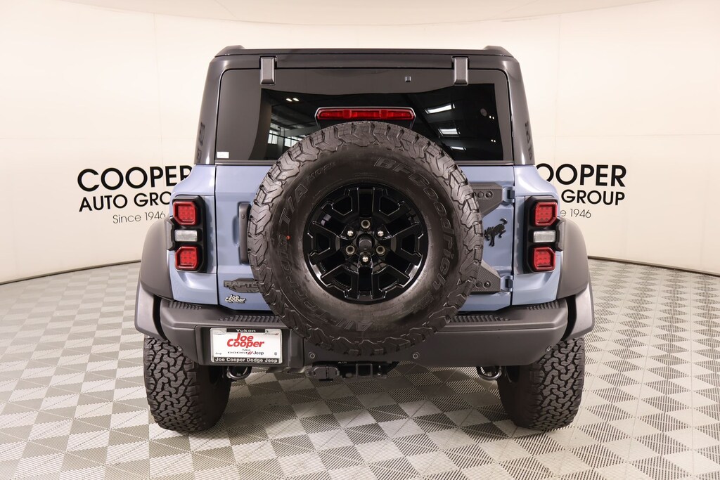 Joe Cooper Chrysler Dodge Jeep Ram of Yukon **405-265-1400** Azure Gray Metallic 2025 Ford Bronco Raptor 4WD 3.0L EcoBoost V6 THIS VEHICLE COMES EQUIPPED WITH THE FOLLOWING OPTIONS AND FEATURES: Equipment Group 374A Lux Package, 12 Speakers, 4-Wheel Disc Brakes, ABS brakes, Air Conditioning, Alloy wheels, AM/FM radio: SiriusXM with 360L, Auto High-beam Headlights, Auto-dimming Rear-View mirror, Automatic temperature control, Brake assist, Compass, Connected Navigation, Convertible HardTop, Convertible roof lining, Delay-off headlights, Driver door bin, Driver vanity mirror, Dual front impact airbags, Dual front side impact airbags, Electronic Stability Control, Emergency communication system: 911 Assist, Exterior Parking Camera Rear, Front anti-roll bar, Front Bucket Seats, Front Center Armrest, Front dual zone A/C, Front fog lights, Front reading lights, Front Row Top Panels & Door Storage Bags, Front wheel independent suspension, Fully automatic headlights, Garage door transmitter, Glass rear window, Hard Top Sound Deadening Headliner, Heated door mirrors, Heated front seats, Heated steering wheel, Illuminated entry, Integrated roll-over protection, Internet access capable: FordPass Connect, Leather Shift Knob, Low Gloss Black High Coverage Fender Flares, Low tire pressure warning, Marine Grade Vinyl Bucket Seats, Navigation system: Connected Navigation, Occupant sensing airbag, Outside temperature display, Overhead airbag, Overhead console, Panic alarm, Passenger door bin, Passenger vanity mirror, Power door mirrors, Power steering, Power windows, Radio data system, Radio: B&O Sound System by Bang & Olufsen, Rear anti-roll bar, Rear seat center armrest, Rear window defroster, Rear window wiper, Rear-Window Defroster & Washer, Remote keyless entry, Security system, Shadow Black Painted Hard Top, SiriusXM w/360L, Speed control, Split folding rear seat, Steering wheel mounted audio controls, SYNC 4, Tachometer, Telescoping steering wheel, Tilt steering wheel, Traction control, Trip computer, Turn signal indicator mirrors, Variably intermittent wipers, Voltmeter, and Wheels: 17" Black High Gloss-Painted Aluminum. Recent Arrival!