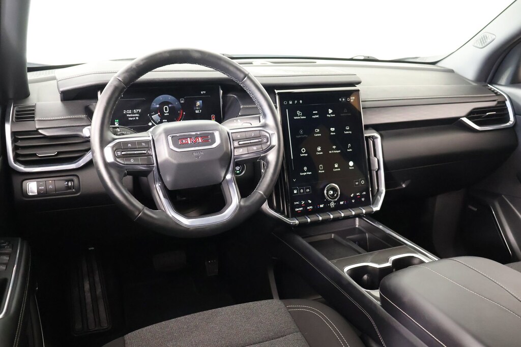 The Acadia's interior is designed with your comfort and convenience in mind. Sink into the heated, 8-way power-adjustable driver's seat and enjoy the premium Bose audio system that fills the cabin with rich, immersive sound. Stay connected with the intuitive 15-inch infotainment system, featuring seamless integration with Apple CarPlay and Android Auto.