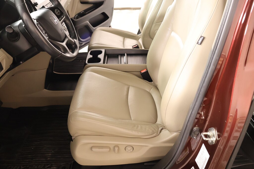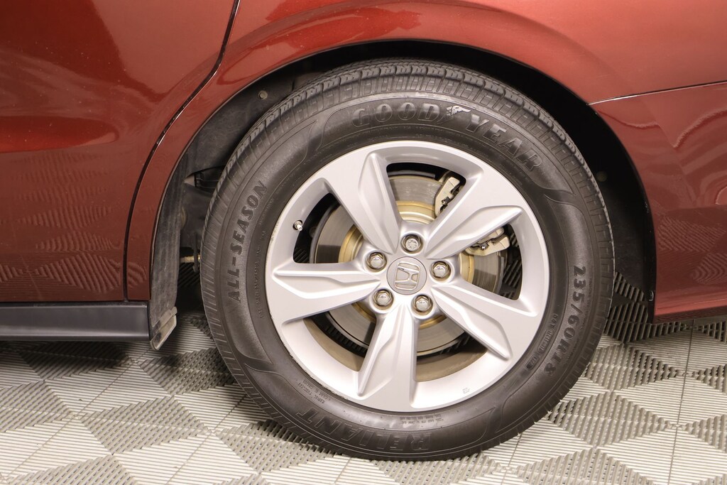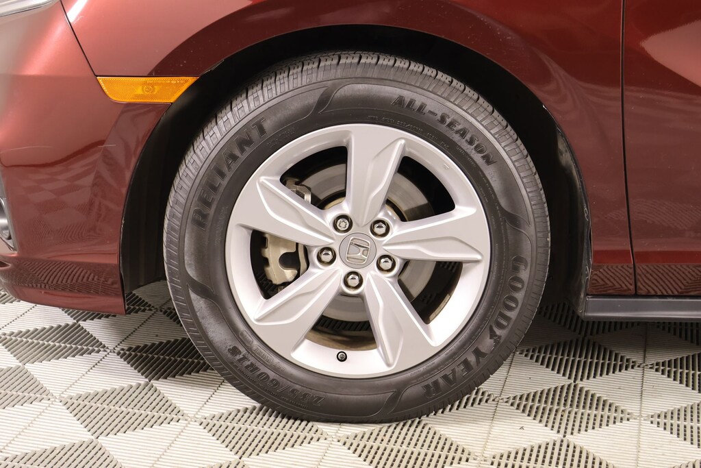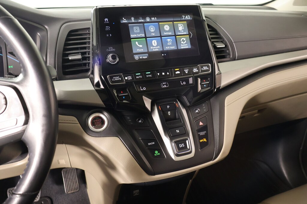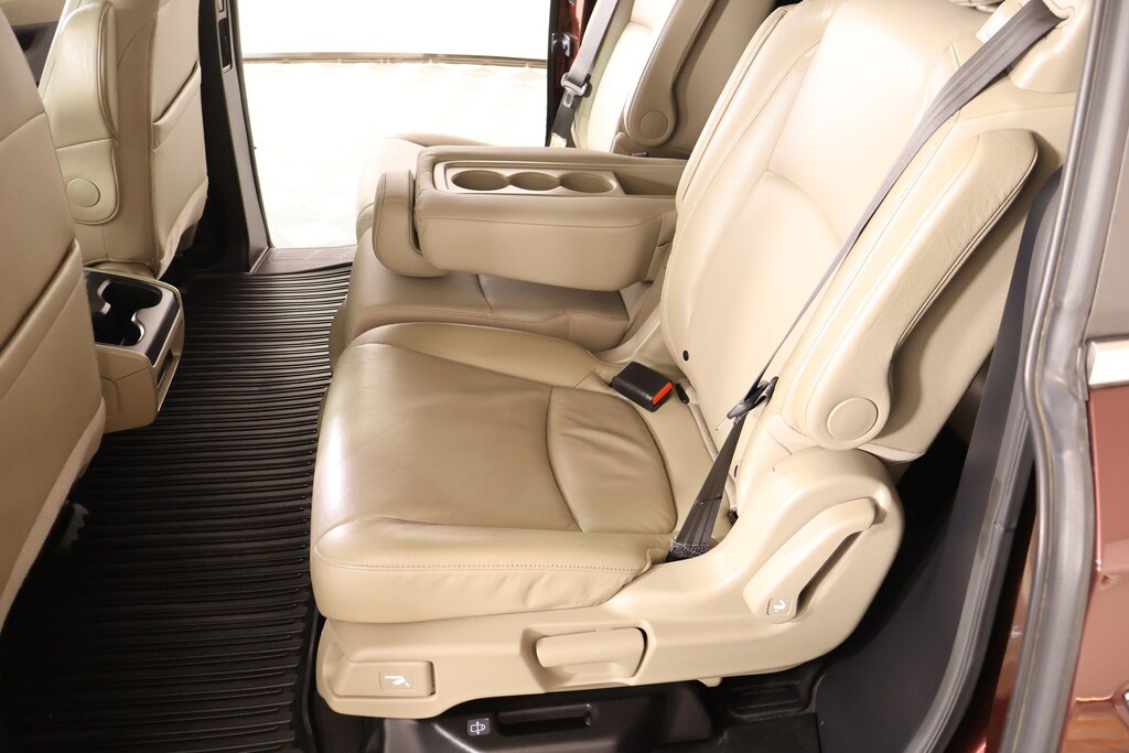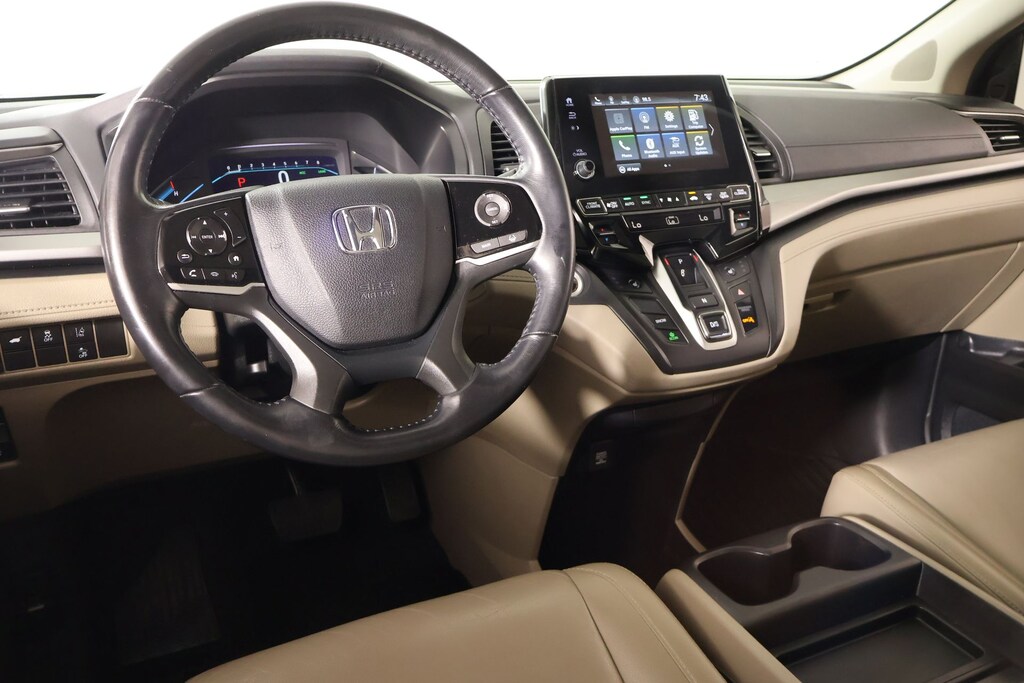 2019 Honda Odyssey AM/FM radio: SiriusXM, Front dual zone A/C, Radio: 160-Watt AM/FM/HD/SiriusXM Audio System, Rear air conditioning, 3rd row seats: split-bench, 4-Wheel Disc Brakes, 4.33 Axle Ratio, 7 Speakers, A/V remote: CabinControl, ABS brakes, Air Conditioning, Alloy wheels, Anti-whiplash front head restraints, Apple CarPlay/Android Auto, Auto High-beam Headlights, Auto-dimming Rear-View mirror, Automatic temperature control, Blind Spot Information (BSI) System warning, Brake assist, Bumpers: body-color, Delay-off headlights, Driver door bin, Driver vanity mirror, Driver's Seat Mounted Armrest, Dual front impact airbags, Dual front side impact airbags, Electronic Stability Control, Emergency communication system: HondaLink, Exterior Parking Camera Rear, Forward collision: Collision Mitigation Braking System (CMBS) + FCW mitigation, Four wheel independent suspension, Front anti-roll bar, Front Bucket Seats, Front fog lights, Front reading lights, Fully automatic headlights, Garage door transmitter: HomeLink, Heated door mirrors, Heated Front Bucket Seats, Heated front seats, Illuminated entry, Knee airbag, Lane departure: Lane Keeping Assist System (LKAS) active, Leather Seat Trim, Leather steering wheel, Low tire pressure warning, Memory seat, Occupant sensing airbag, Outside temperature display, Overhead airbag, Overhead console, Panic alarm, Passenger door bin, Passenger seat mounted armrest, Passenger vanity mirror, Power door mirrors, Power driver seat, Power Liftgate, Power moonroof, Power passenger seat, Power steering, Power windows, Radio data system, Rear anti-roll bar, Rear reading lights, Rear seat center armrest, Rear window defroster, Rear window wiper, Reclining 3rd row seat, Remote keyless entry, Security system, Speed control, Speed-sensing steering, Speed-Sensitive Wipers, Split folding rear seat, Spoiler, Steering wheel mounted audio controls, Tachometer, Telescoping steering wheel, Tilt steering wheel, Traction control, Trip computer, Turn signal indicator mirrors, Variably intermittent wipers, and Wheels: 18" Dark Silver-Painted Alloy.