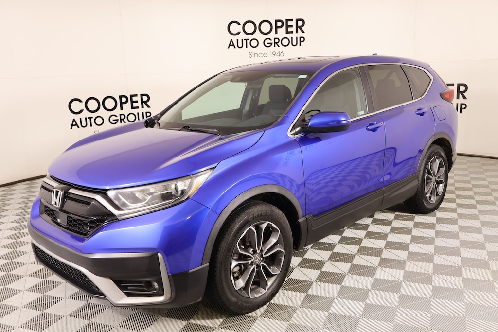 THIS VEHICLE COMES EQUIPPED WITH THE FOLLOWING OPTIONS AND FEATURES: CR-V EX, 4D Sport Utility, 1.5L I4 DOHC 16V, CVT, FWD, Blue, Gray Cloth, 18" Alloy Wheels, 4-Wheel Disc Brakes, 5.64 Axle Ratio, 6 Speakers, ABS brakes, Adaptive Cruise Control: Adaptive Cruise Control (ACC) with Low-Speed Follow, Air Conditioning, Alloy wheels, AM/FM radio: SiriusXM, Apple CarPlay/Android Auto, Auto High-beam Headlights, Automatic temperature control, Blind Spot Information (BSI) System warning, Brake assist, Bumpers: body-color, Cloth Seat Trim, Compass, Delay-off headlights, Driver door bin, Driver vanity mirror, Dual front impact airbags, Dual front side impact airbags, Electronic Stability Control, Exterior Parking Camera Rear, Forward collision: Collision Mitigation Braking System (CMBS) + FCW mitigation, Four wheel independent suspension, Front anti-roll bar, Front Bucket Seats, Front Center Armrest, Front dual zone A/C, Front fog lights, Front reading lights, Heated door mirrors, Heated Front Bucket Seats, Heated front seats, Illuminated entry, Low tire pressure warning, Occupant sensing airbag, Outside temperature display, Overhead airbag, Overhead console, Panic alarm, Passenger door bin, Passenger vanity mirror, Power door mirrors, Power driver seat, Power moonroof, Power steering, Power windows, Radio data system, Radio: 180-Watt AM/FM/HD/SiriusXM Audio System, Rear anti-roll bar, Rear seat center armrest, Rear window defroster, Rear window wiper, Remote keyless entry, Security system, Speed control, Speed-sensing steering, Speed-Sensitive Wipers, Split folding rear seat, Spoiler, Steering wheel mounted audio controls, Tachometer, Telescoping steering wheel, Tilt steering wheel, Traction control, Trip computer, Turn signal indicato