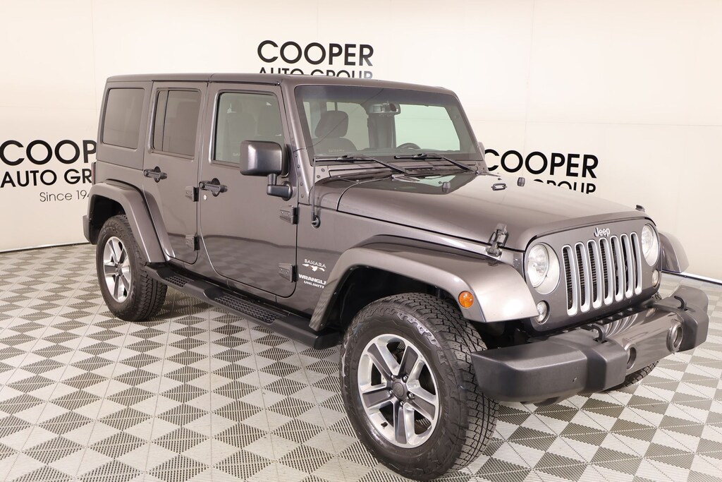 Joe Cooper Chrysler Dodge Jeep Ram of Yukon **405-265-1400** Granite Crystal Metallic Clearcoat 2016 Jeep Wrangler Unlimited Sahara 4WD 3.6L V6 24V VVT THIS VEHICLE COMES EQUIPPED WITH THE FOLLOWING OPTIONS AND FEATURES: Connectivity Group (Leather Wrapped Steering Wheel, Remote USB Port, Tire Pressure Monitoring Display, Uconnect Voice Command w/Bluetooth, and Vehicle Information Center), Max Tow Package (3.73 Rear Axle Ratio, Class II Receiver Hitch, and Trailer Tow w/4-Pin Connector Wiring), Quick Order Package 24G (Body Color Appliques Front Bumper, Body Color Appliques Rear Bumper, and Body Color/Accent Color Grille), 18" x 7.5" Polished Satin Carbon Wheels, 4-Wheel Disc Brakes, 40GB Hard Drive w/28GB Available, 5-Year SiriusXM Travel Link Service, 6.5" Touchscreen Display, ABS brakes, Air Conditioning, Anti-Spin Differential Rear Axle, Audio Jack Input for Mobile Devices, Auto-dimming Rear-View mirror, Black 3-Piece Hard Top, Brake assist, Cloth Seats w/Adjustable Head Restraints, Compass, Driver door bin, Driver vanity mirror, Dual front impact airbags, Electronic Stability Control, Freedom Panel Storage Bag, Front anti-roll bar, Front Bucket Seats, Front Center Armrest w/Storage, Front fog lights, Front reading lights, Fully automatic headlights, GPS Navigation, Heated door mirrors, Heated Front Seats, Heavy Duty Suspension w/Gas Shocks, Illuminated entry, Integrated roll-over protection, Jeep Trail Rated Kit, Leather steering wheel, Low tire pressure warning, Occupant sensing airbag, Outside temperature display, Panic alarm, Passenger door bin, Passenger vanity mirror, Power door mirrors, Power steering, Power windows, Radio data system, Radio: 430N, Rear anti-roll bar, Rear Window Defroster, Rear Window Wiper/Washer, Remote keyless entry, Remote Start System, Security system, SiriusXM Travel Link, Speed control, Split folding rear seat, Steering wheel mounted audio controls, Sunrider Soft Top, Tachometer, Tilt steering wheel, Traction control, Trip computer, Tubular Side Steps (DISC), Variably intermittent wipers, 8 Speakers, Alloy wheels, Alpine 9-Speaker w/All Weather Subwoofer, AM/FM radio: SiriusXM, CD player, Manufacturer's Statement of Origin, and Radio: 130. Recent Arrival! NO ACCIDENT HISTORY ON CARFAX!!!!, NAVIGATION/GPS/NAV, REAR VIEW CAMERA, ONE OWNER, BLUETOOTH HANDS FREE, 18" x 7.5" Polished Satin Carbon Wheels, 3.73 Rear Axle Ratio, 4-Wheel Disc Brakes, 40GB Hard Drive w/28GB Available, 5-Year SiriusXM Travel Link Service, 6.5" Touchscreen Display, ABS brakes, Air Conditioning, Anti-Spin Differential Rear Axle, Audio Jack Input for Mobile Devices, Auto-dimming Rear-View mirror, Black 3-Piece Hard Top, Body Color Appliques Front Bumper, Body Color Appliques Rear Bumper, Body Color/Accent Color Grille, Brake assist, Class II Receiver Hitch, Cloth Seats w/Adjustable Head Restraints, Compass, Connectivity Group, Driver door bin, Driver vanity mirror, Dual front impact airbags, Electronic Stability Control, Freedom Panel Storage Bag, Front anti-roll bar, Front Bucket Seats, Front Center Armrest w/Storage, Front fog lights, Front reading lights, Fully automatic headlights, GPS Navigation, Heated door mirrors, Heated Front Seats, Heavy Duty Suspension w/Gas Shocks, Illuminated entry, Integrated roll-over protection, Jeep Trail Rated Kit, Leather steering wheel, Leather Wrapped Steering Wheel, Low tire pressure warning, Max Tow Package, Occupant sensing airbag, Outside temperature display, Panic alarm, Passenger door bin, Passenger vanity mirror, Power door mirrors, Power steering, Power windows, Quick Order Package 24G, Radio data system, Radio: 430N, Rear anti-roll bar, Rear Window Defroster, Rear Window Wiper/Washer, Remote keyless entry, Remote Start System, Remote USB Port, Security system, SiriusXM Travel Link, Speed control, Split folding rear seat, Steering wheel mounted audio controls, Sunrider Soft Top, Tachometer, Tilt steering wheel, Tire Pressure Monitoring Display, Traction control, Trailer Tow w/