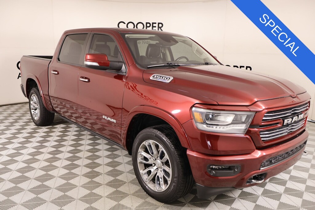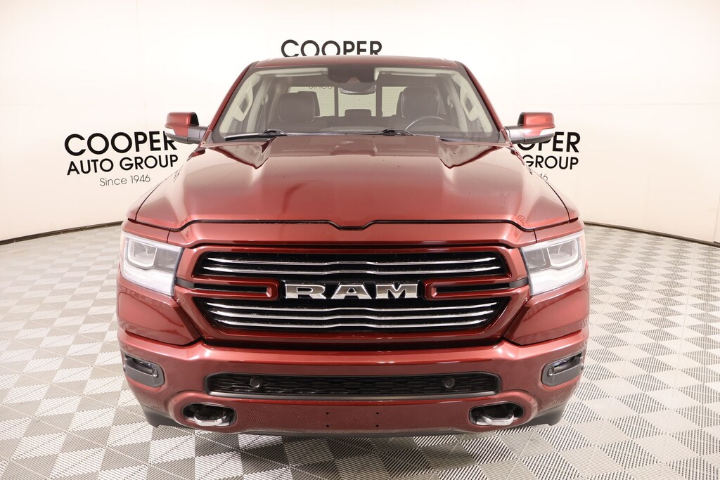 Joe Cooper Chrysler Dodge Jeep Ram of Yukon **405-265-1400** Delmonico Red Pearlcoat 2022 Ram 1500 Laramie 4WD HEMI 5.7L V8 Multi Displacement VVT THIS VEHICLE COMES EQUIPPED WITH THE FOLLOWING OPTIONS AND FEATURES: Laramie Level An Equipment Group (DISC) (Auto High Beam Headlamp Control, Foam Bottle Insert (Door Trim Panel), ParkSense Front/Rear Park Assist w/Stop, Rain Sensitive Windshield Wipers, Rear 60/40 Folding Split Recline Seat, and Remote Tailgate Release), Laramie Southwest Edition (12" Touchscreen Display, 4G LTE Wi-Fi Hot Spot, All R1 High Radios, All Radio Equipped Vehicles, Apple CarPlay, Auto-Dimming Exterior Driver Mirror, Body Color Exterior Mirrors, Body Color Front Bumper, Body Color Premium Power Mirrors, Body Color Rear Bumper w/Step Pads, Chrome Tow Hooks, Connected Travel & Traffic Services, Connectivity - US/Canada, Convex Wide-Angle Mirror Insert, Disassociated Touchscreen Display, Dome Dual LED Reading Lamp, Dual-Pane Panoramic Sunroof, Exterior Mirrors Courtesy Lamps, Exterior Mirrors w/Heating Element, Exterior Mirrors w/Memory, Exterior Mirrors w/Supplemental Signals, For Details, Visit DriveUconnect.com, For More Info, Call 800-643-2112, Global Telematics Box Module (TBM), Google Android Auto, GPS Antenna Input, GPS Navigation, Grille Surround 3 Body Color Tex 4 Chrome, HD Radio, Integrated Center Stack Radio, Integrated Voice Command w/Bluetooth, LED Dome/Reading Lamp, MOPAR Lockable Console Storage, Off-Road Information Pages, Power Running Boards, Power-Folding Mirrors, Radio: Uconnect 5 Nav w/12.0" Display, SiriusXM Radio Service, SiriusXM w/360L, Trailer Brake Control, USB Host Flip, and Wheels: 20" x 9" Premium Painted w/Inserts), Quick Order Package 27H Laramie, 26 Gallon Fuel Tank, 2nd Row In Floor Storage Bins, 3 Rear Seat Head Restraints, 3.21 Rear Axle Ratio, 4 Way Front Headrests, 4-Wheel Disc Brakes, 48V Belt Starter Generator, 8.4" Touchscreen Display, ABS brakes, Air Conditioning, Anti-Spin Differential Rear Axle, Apple CarPlay/Android Auto, Auto-dimming door mirrors, Auto-dimming Rear-View mirror, Automatic temperature control, Brake assist, Compass, Delay-off headlights, Driver door bin, Driver Seat Memory, Driver vanity mirror, Electronic Stability Control, Front anti-roll bar, Front Center Armrest w/Storage, Front dual zone A/C, Front fog lights, Front reading lights, Front Seat Back Map Pockets, Fully automatic headlights, Garage door transmitter, Heated door mirrors, Heated Front Seats, Heated Steering Wheel, Illuminated entry, Leather Trim 40/20/40 Bench Seat, Memory seat, Outside temperature display, Overhead airbag, Overhead console, Panic alarm, ParkView Rear Back-Up Camera, Passenger door bin, Passenger vanity mirror, Pedal memory, Power door mirrors, Power driver seat, Rear 60/40 Folding Seat, Rear anti-roll bar, Rear seat center armrest, Rear step bumper, Rear window defroster, Remote keyless entry, Security system, Speed control, Steering wheel mounted audio controls, Tachometer, Telescoping steering wheel, Tilt steering wheel, Traction control, Trip computer, Turn signal indicator mirrors, Variably intermittent wipers, Ventilated Front Seats, Voltmeter, #1 Seat Foam Cushion, 10 Speakers, Adjustable pedals, Alloy wheels, AM/FM radio: SiriusXM, Audio memory, Bumpers: chrome, Chrome Exterior Mirrors, Dual front impact airbags, Dual front side impact airbags, Front wheel independent suspension, Heated front seats, Heated steering wheel, Leather steering wheel, Low tire pressure warning, MOPAR Front & Rear Rubber Floor Mats, Occupant sensing airbag, Power 2-Way Driver Lumbar Adjust, Power 2-Way Passenger Lumbar Adjust, Power 8-Way Driver & Passenger Seats, Power passenger seat, Power steering, Power windows, Radio data system, Radio: Uconnect 5 W w/8.4" Display, Split folding rear seat, Ventilated front seats, and Wheels: 18" x 8" Aluminum Base PainteD. Recent Arrival! NO ACCIDENT HISTORY ON CARFAX!!!!, NAVIGATION/GPS/NAV, REAR VIEW CAMERA, LEATHER, SUNROOF/MOONROOF, ONE