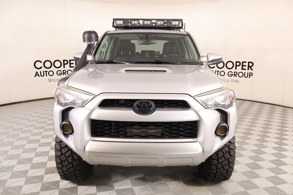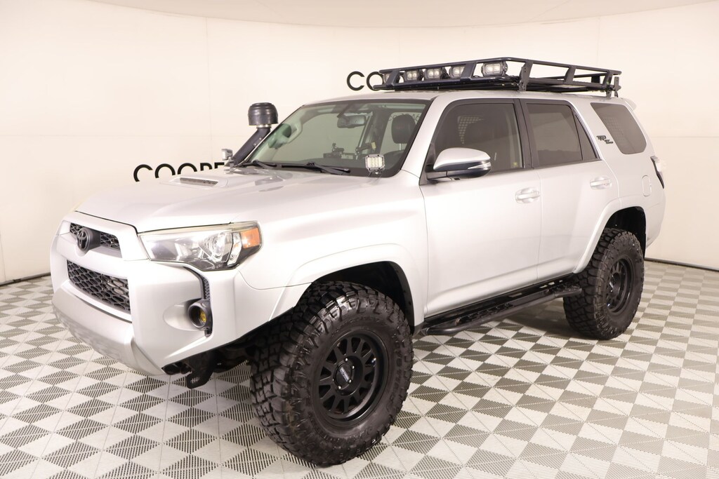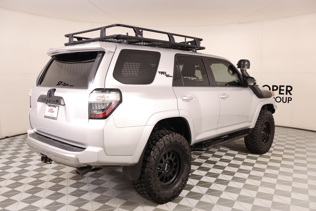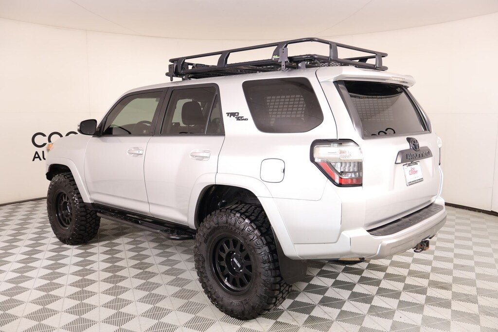 Joe Cooper Chrysler Dodge Jeep Ram of Yukon **405-265-1400** Classic Silver Metallic 2018 Toyota 4Runner TRD Off-Road Premium 4WD 4.0L V6 SMPI DOHC THIS VEHICLE COMES EQUIPPED WITH THE FOLLOWING OPTIONS AND FEATURES: Off Road Package (Black Roof Rails), Off Road Premium Package w/Softex (Auto-Dimming Rear-View Mirror, Body Color Heated Mirrors, and Garage Door Opener), Cooper Certified Certified, 4WD, Graphite Premium Synthetic, 4-Wheel Disc Brakes, 8 Speakers, ABS brakes, Air Conditioning, AM/FM radio: SiriusXM, Anti-whiplash front head restraints, Auto-dimming Rear-View mirror, Brake assist, Bumpers: body-color, CD player, Driver door bin, Dual front impact airbags, Dual front side impact airbags, Electronic Stability Control, Emergency communication system: Safety Connect, Exterior Parking Camera Rear, Front anti-roll bar, Front Bucket Seats, Front fog lights, Front reading lights, Front wheel independent suspension, Garage door transmitter: HomeLink, Heated door mirrors, Heated Front Bucket Seats, Heated front seats, Illuminated entry, Knee airbag, Leather Shift Knob, Low tire pressure warning, Moonroof w/Tilt Up & Slide, Occupant sensing airbag, Overhead airbag, Overhead console, Panic alarm, Passenger door bin, Power door mirrors, Power driver seat, Power steering, Power Tilt/Slide Moonroof w/Sunshade, Power windows, Radio: Entune Premium Audio w/Navigation, Rear anti-roll bar, Rear seat center armrest, Rear window defroster, Rear window wiper, Remote keyless entry, Roof rack: rails only, Security system, Softex Synthetic Leather Seat Trim, Speed control, Speed-sensing steering, Split folding rear seat, Spoiler, Steering wheel mounted audio controls, Telescoping steering wheel, Tilt steering wheel, Traction control, Trip computer, Turn signal indicator mirrors, Variably intermittent wipers, Wheels: 17" x 7.5" 7-Spoke Unique Off-Road Alloy, 3.727 Axle Ratio, Alloy wheels, Compass, Driver vanity mirror, Front Center Armrest, Outside temperature display, Passenger vanity mirror, Power passenger seat, and Tachometer. Recent Arrival! Cooper Certified, NO ACCIDENT HISTORY ON CARFAX!!!!, NAVIGATION/GPS/NAV, REAR VIEW CAMERA, LEATHER, SUNROOF/MOONROOF, ONE OWNER, KEYLESS ENTRY, BLUETOOTH HANDS FREE, APPLE CARPLAY, 4WD, Graphite Premium Synthetic, 4-Wheel Disc Brakes, 8 Speakers, ABS brakes, Air Conditioning, AM/FM radio: SiriusXM, Anti-whiplash front head restraints, Auto-Dimming Rear-View Mirror, Auto-dimming Rear-View mirror, Black Roof Rails, Body Color Heated Mirrors, Brake assist, Bumpers: body-color, CD player, Driver door bin, Dual front impact airbags, Dual front side impact airbags, Electronic Stability Control, Emergency communication system: Safety Connect, Exterior Parking Camera Rear, Front anti-roll bar, Front Bucket Seats, Front fog lights, Front reading lights, Front wheel independent suspension, Garage Door Opener, Garage door transmitter: HomeLink, Heated door mirrors, Heated Front Bucket Seats, Heated front seats, Illuminated entry, Knee airbag, Leather Shift Knob, Low tire pressure warning, Moonroof w/Tilt Up & Slide, Occupant sensing airbag, Off Road Package, Off Road Premium Package w/Softex, Overhead airbag, Overhead console, Panic alarm, Passenger door bin, Power door mirrors, Power driver seat, Power steering, Power Tilt/Slide Moonroof w/Sunshade, Power windows, Radio: Entune Premium Audio w/Navigation, Rear anti-roll bar, Rear seat center armrest, Rear window defroster, Rear window wiper, Remote keyless entry, Roof rack: rails only, Security system, Softex Synthetic Leather Seat Trim, Speed control, Speed-sensing steering, Split folding rear seat, Spoiler, Steering wheel mounted audio controls, Telescoping steering wheel, Tilt steering wheel, Traction control, Trip computer, Turn signal indicator mirrors, Variably intermittent wipers, Wheels: 17" x 7.5" 7-Spoke Unique Off-Road Alloy.